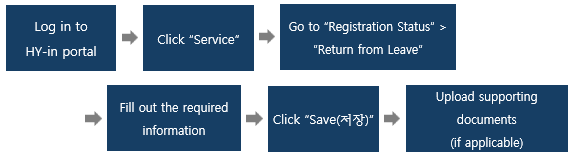 모든 복학은 정해진 기간에 HY-in포털을 통해 신청할 수 있습니다.
