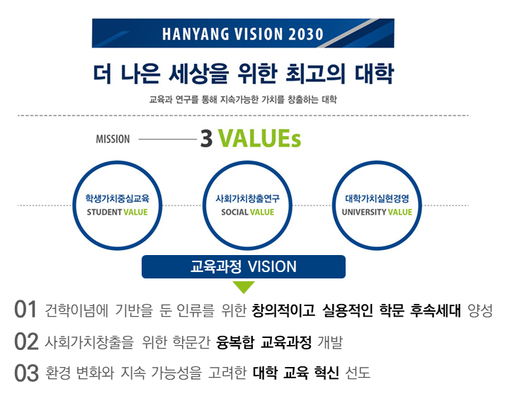 대학이 어떻게 더 나은 세상으로의 발전에 기여할 것인지에 대해 교육하여야 함, 한양대학교의 Vision 2030과의 정합성 유지